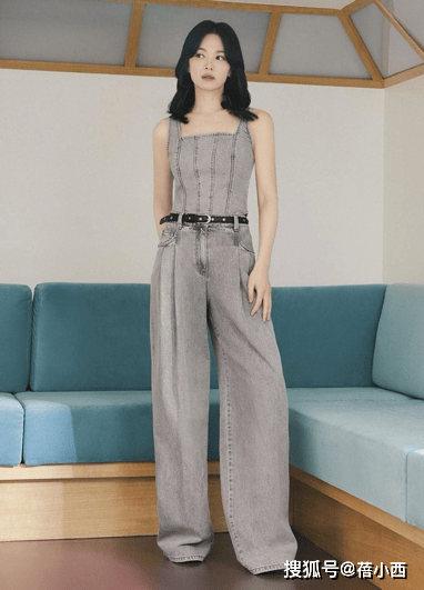 先谈这组牛仔套装的穿搭。上身的牛仔套装相较于传统端庄的连衣裙,更能放大活力与年轻感。它的版型出众,吊带在上半身的修饰作用明显,尤其适合身形较为紧凑的人群。由于是连体设计,整体高度略高于普通牛仔裤的搭配,能在视觉上起到拉长身形的效果。